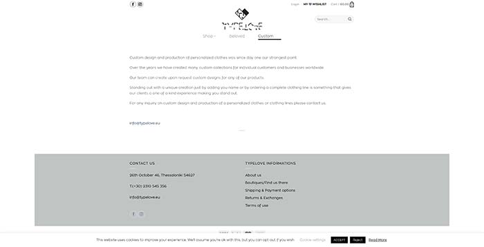 Συμπέρασμα: Το TypeLove.eu αποτελεί ένα πρότυπο καινοτομίας και λειτουργικότητας στον τομέα των ηλεκτρονικών καταστημάτων μόδας. Με τον προσεγμένο σχεδιασμό, τα εντυπωσιακά γραφικά, τη φιλικότητα προς τις κινητές συσκευές και τη βελτιστοποίηση SEO, το ηλεκτρονικό κατάστημα είναι έτοιμο να διαπρέψει στον ανταγωνιστικό ψηφιακό κόσμο.
