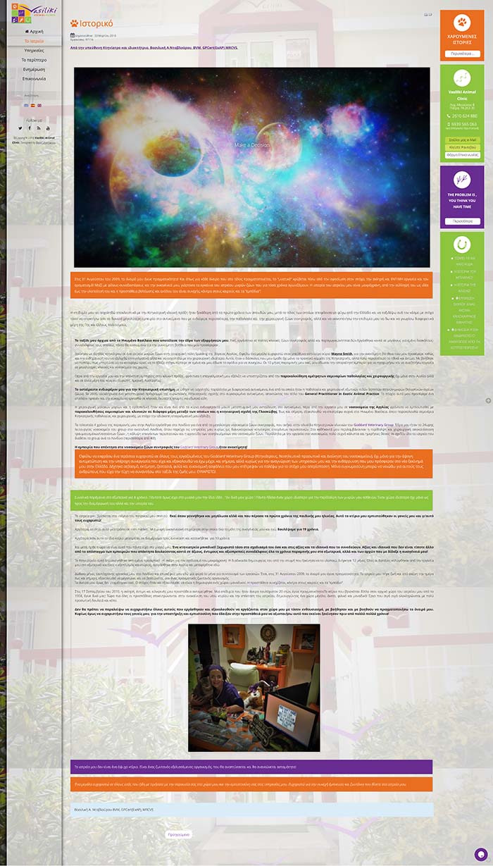 Δημιουργία Ιστοσελίδας για την Κτηνιατρική Κλινική “Vasiliki Animal Clinic”